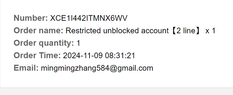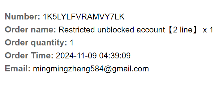 • Order name: Restricted unblocked account【3 line】 x 1